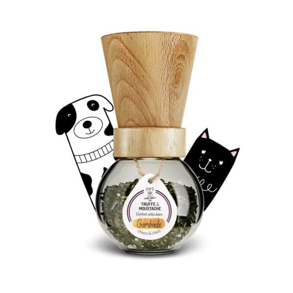 Gambade, complément alimentaire pour améliorer la mobilité et aider à soulager les douleurs articulaires des chats, s’administre en 8 tours de moulin quotidiennement au-dessus de la nourriture de votre chat.