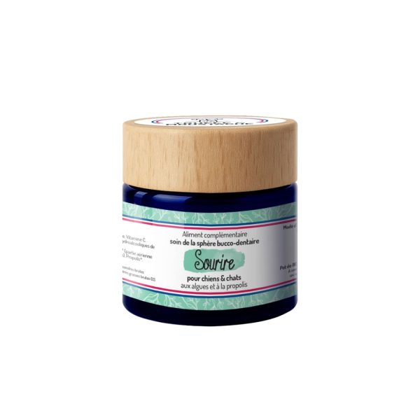 Sourire est un complément alimentaire qui aide à prendre soin de la sphère bucco-dentaire des chiens et chats, 100% naturel et fabriqué en France. En effet, les propriétés des plantes qui le composent contribuent à réduire la plaque dentaire et ramollir et limiter l’apparition du tartre. Grâce aux propriétés antibactériennes des ingrédients qui le composent, Sourire permet de lutter contre la mauvaise haleine.